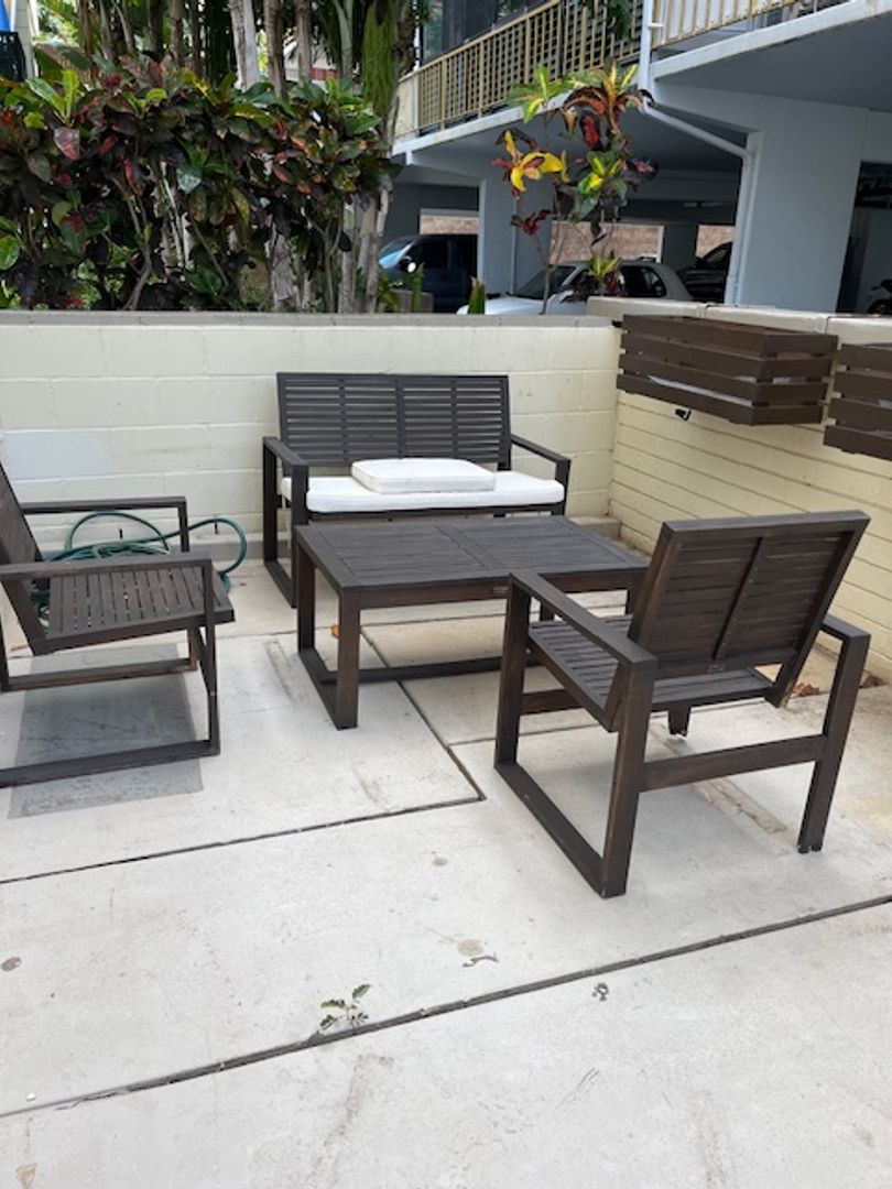 This lightly furnished, 1 bedroom, 1 bathroom unit with 1 open parking stall is available now. The interior space is approximately 751 square feet and has ample storage. The court yard that comes with the unit is 600 square feet & comes with a retractable awning as well as outdoor furnishings. It feels more like a cottage than a condo.